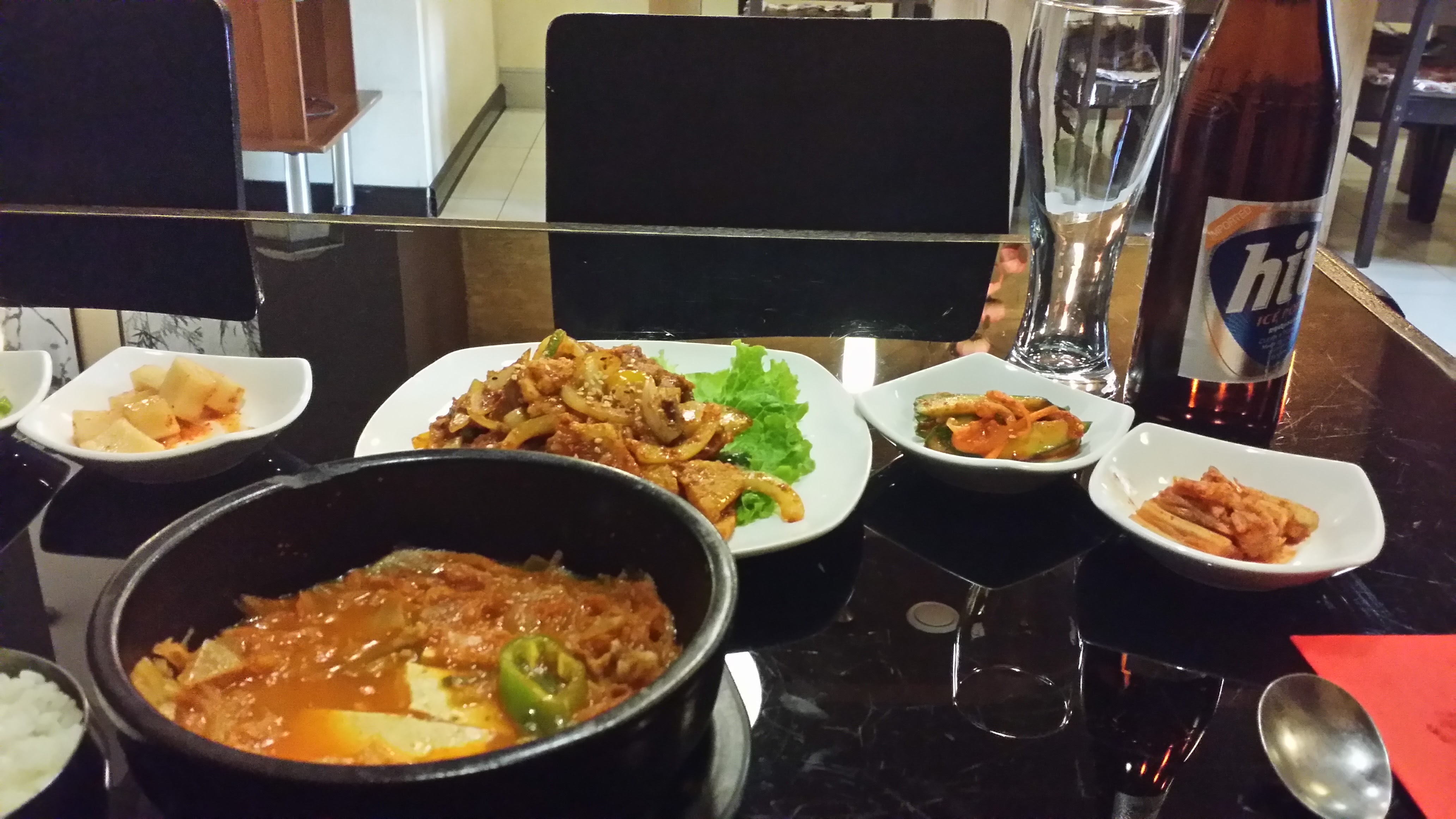여기서 김치찌개와 돼지불고기에 맥주를 마셨습니다.