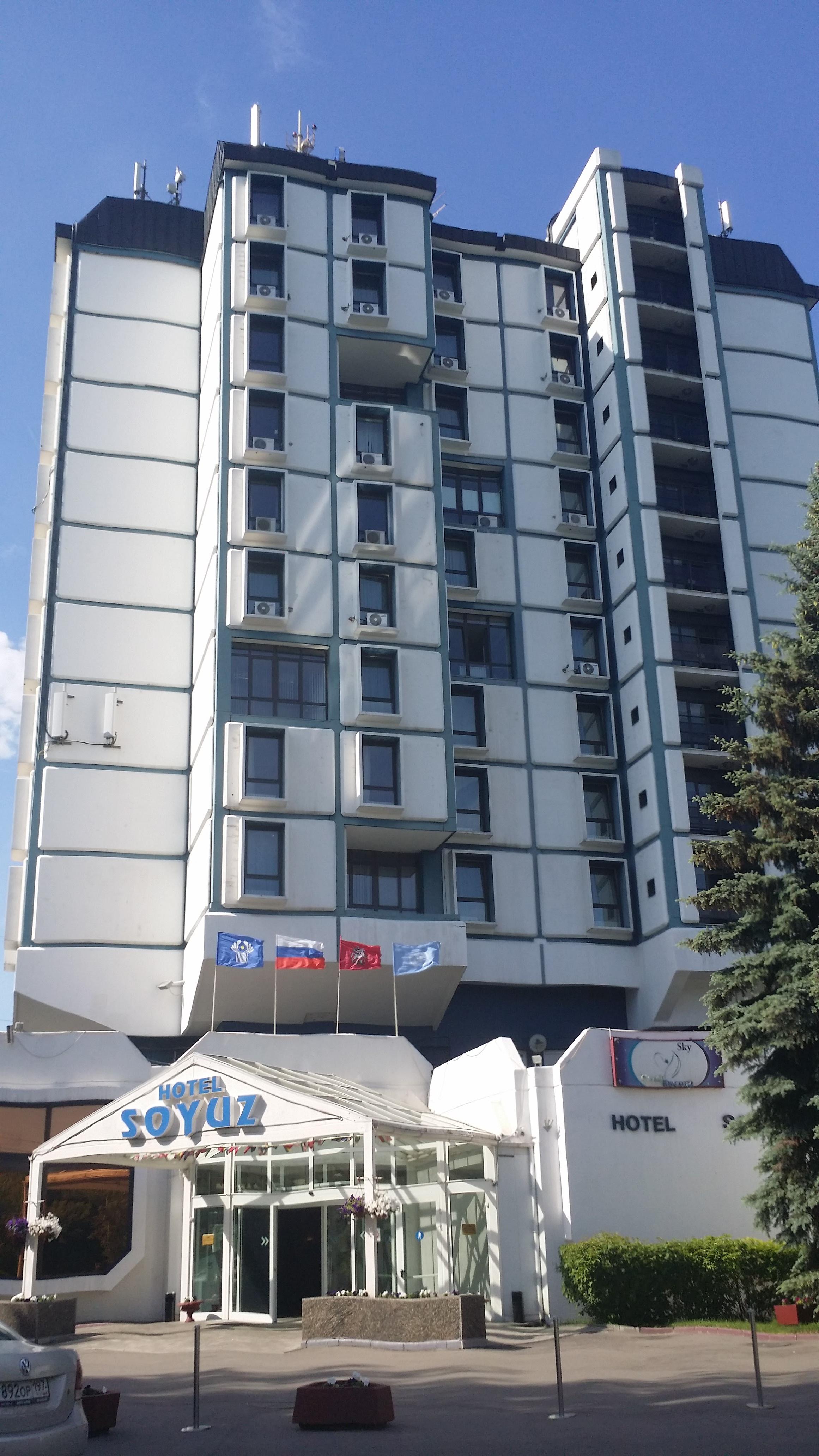 그중 한 택시를 타고 SOYUZ 호텔에 도착했습니다.