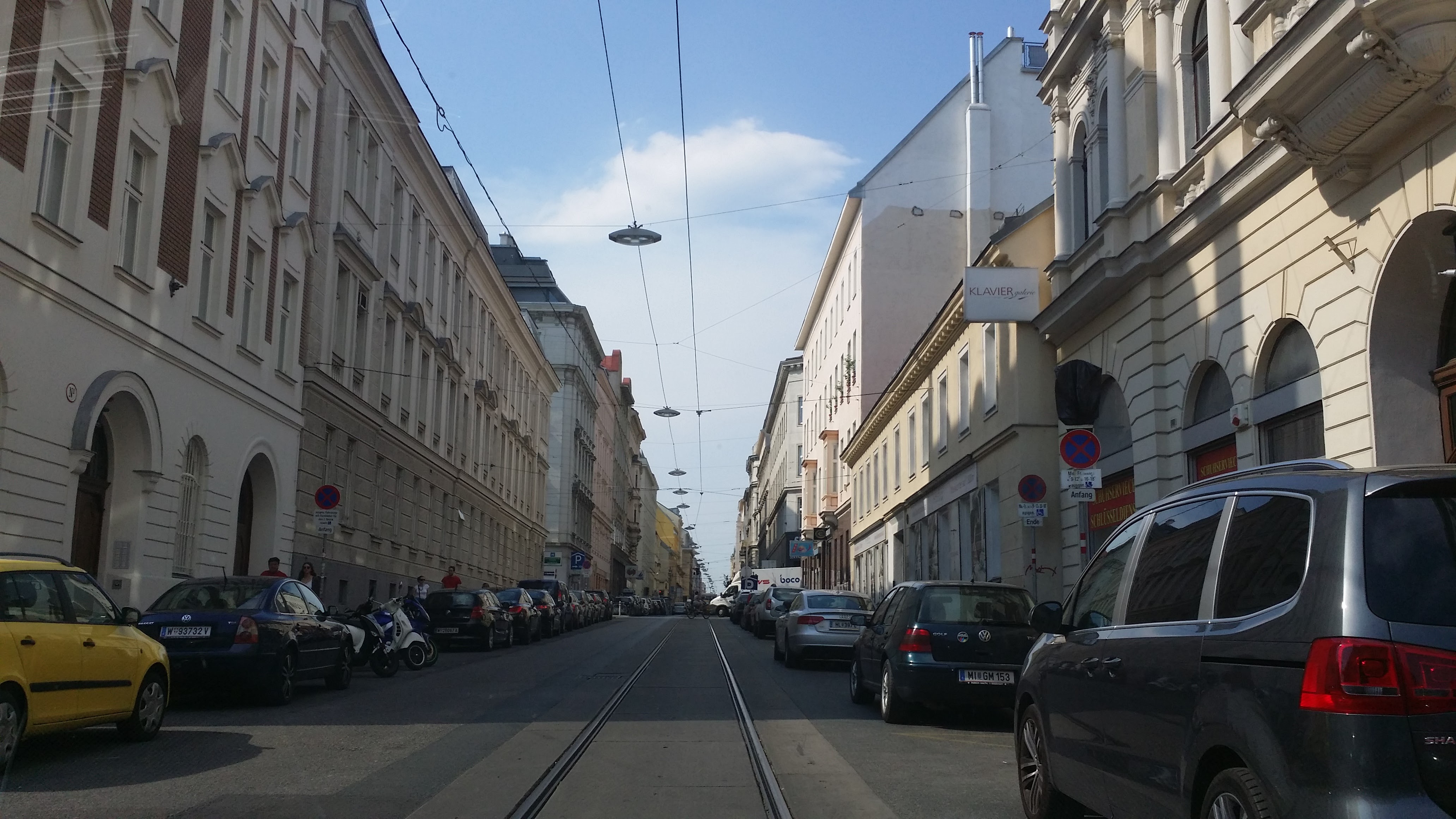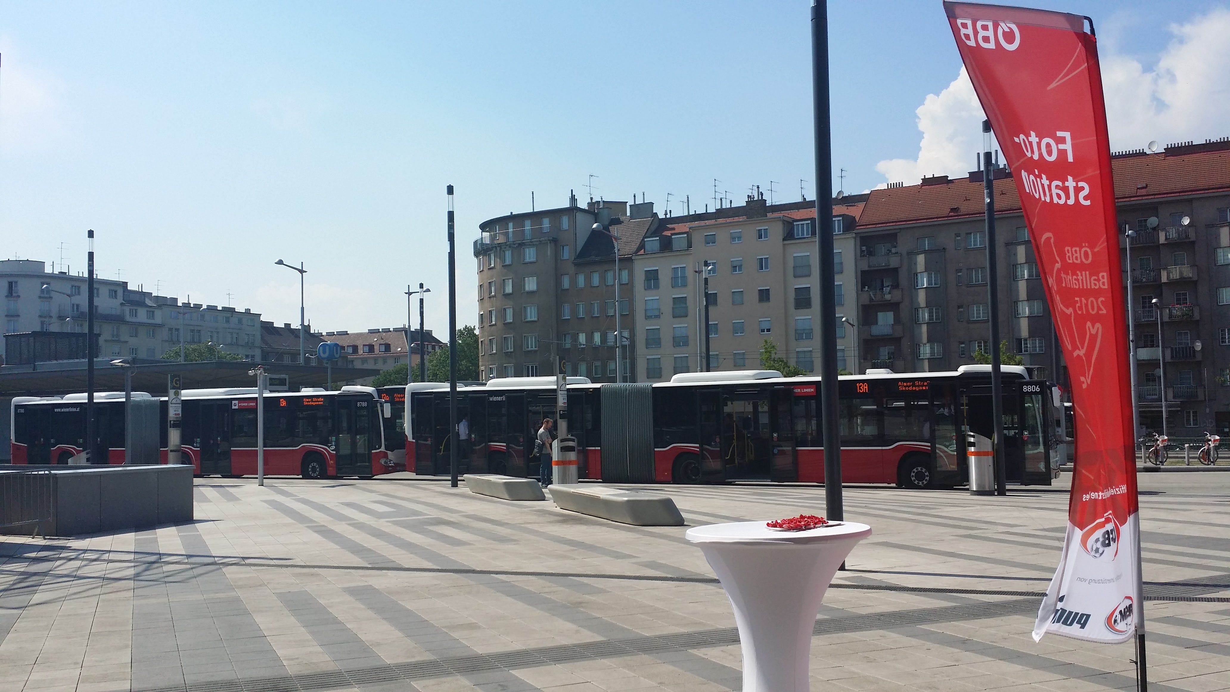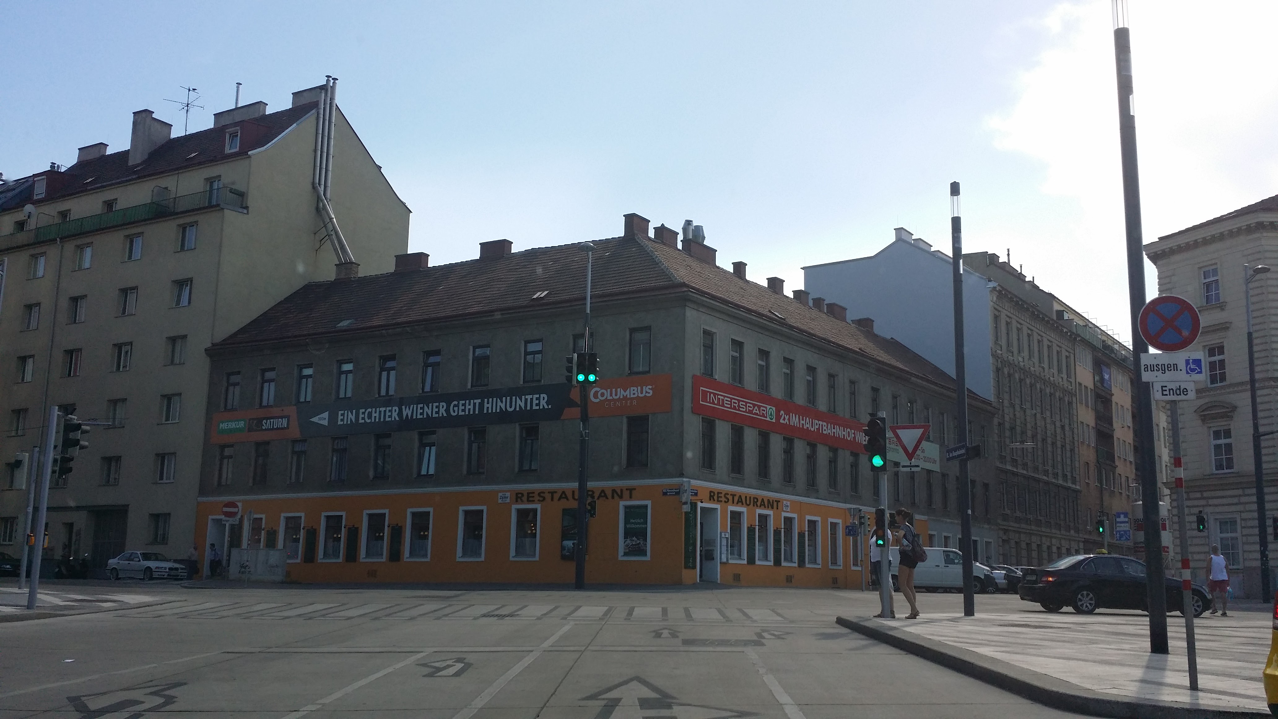 비엔나 역에서 내리고 밖으로 나와 스마트폰 앱을 이용하여 근처 호텔을 예약했습니다.
