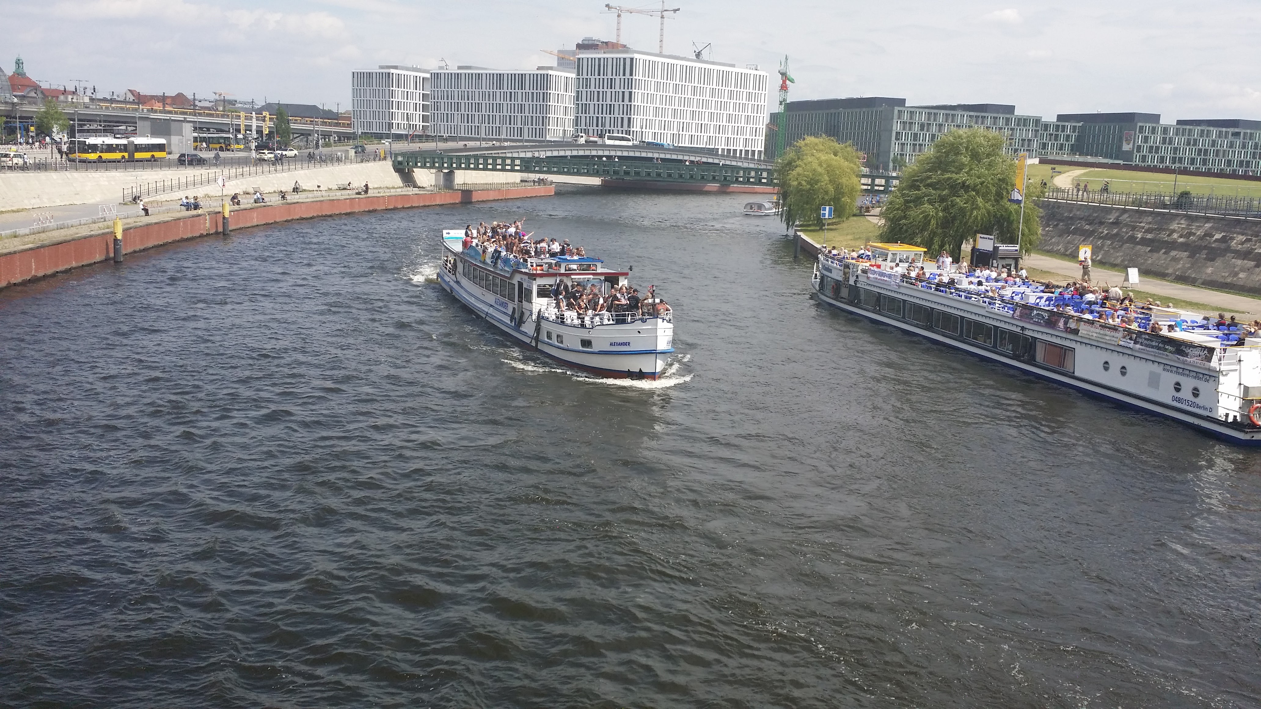 가는 길목의 슈프레강에는 유람선이 다니고 있습니다.