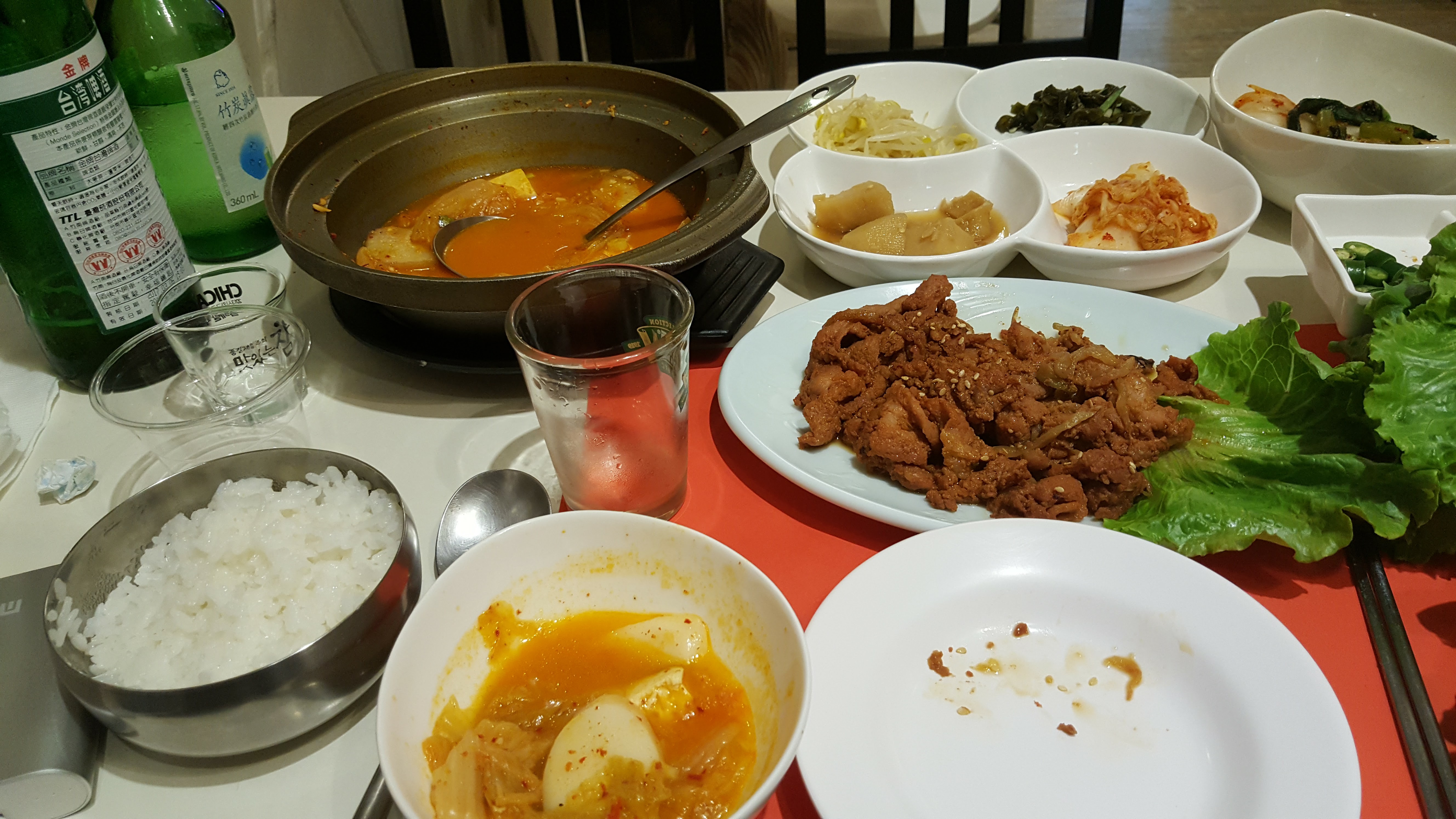 아담한 규모로 김치찌개와 제육육볶음을 시켜 소주 1병과 맥주 2병을 마셨습니다.