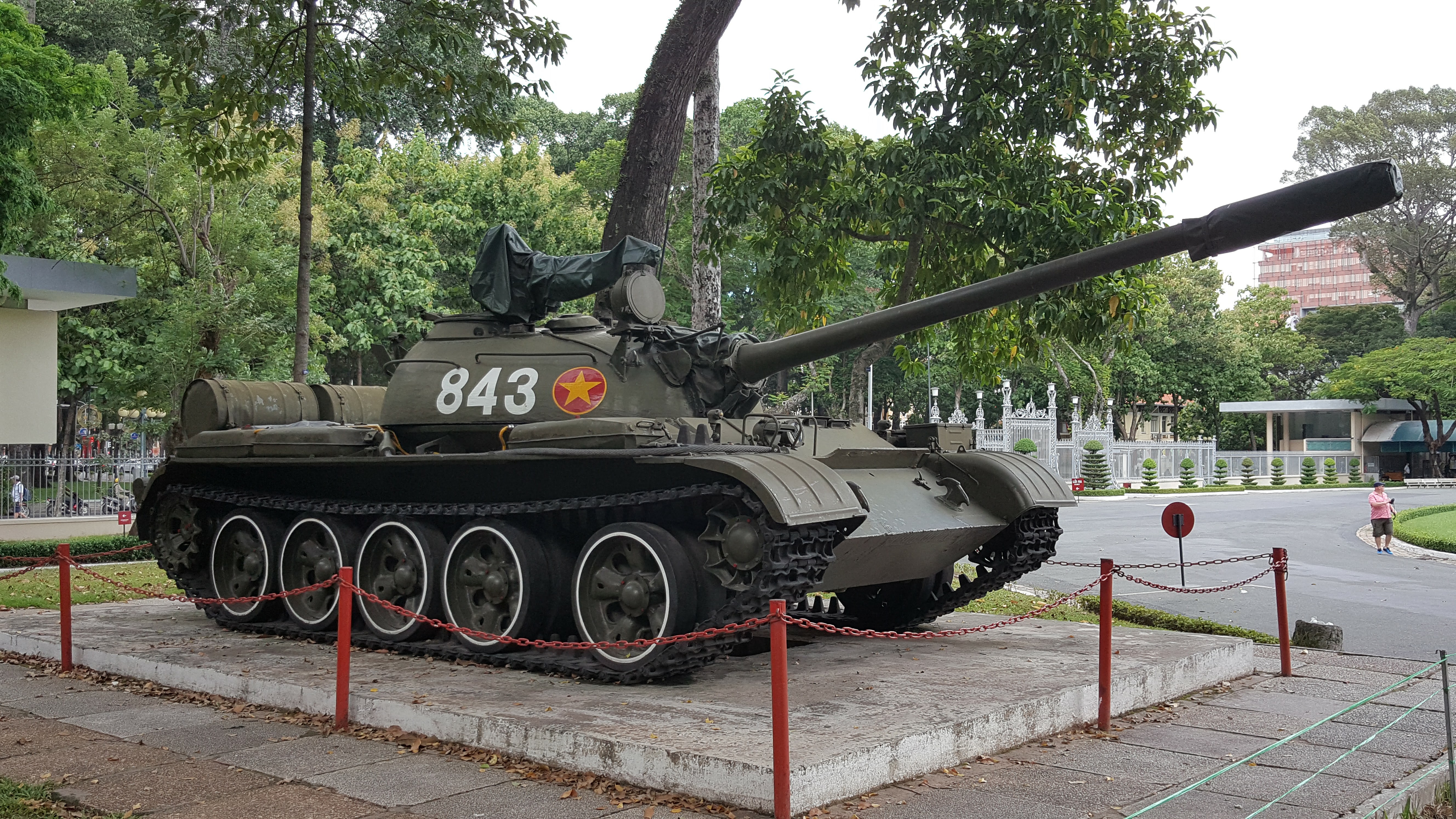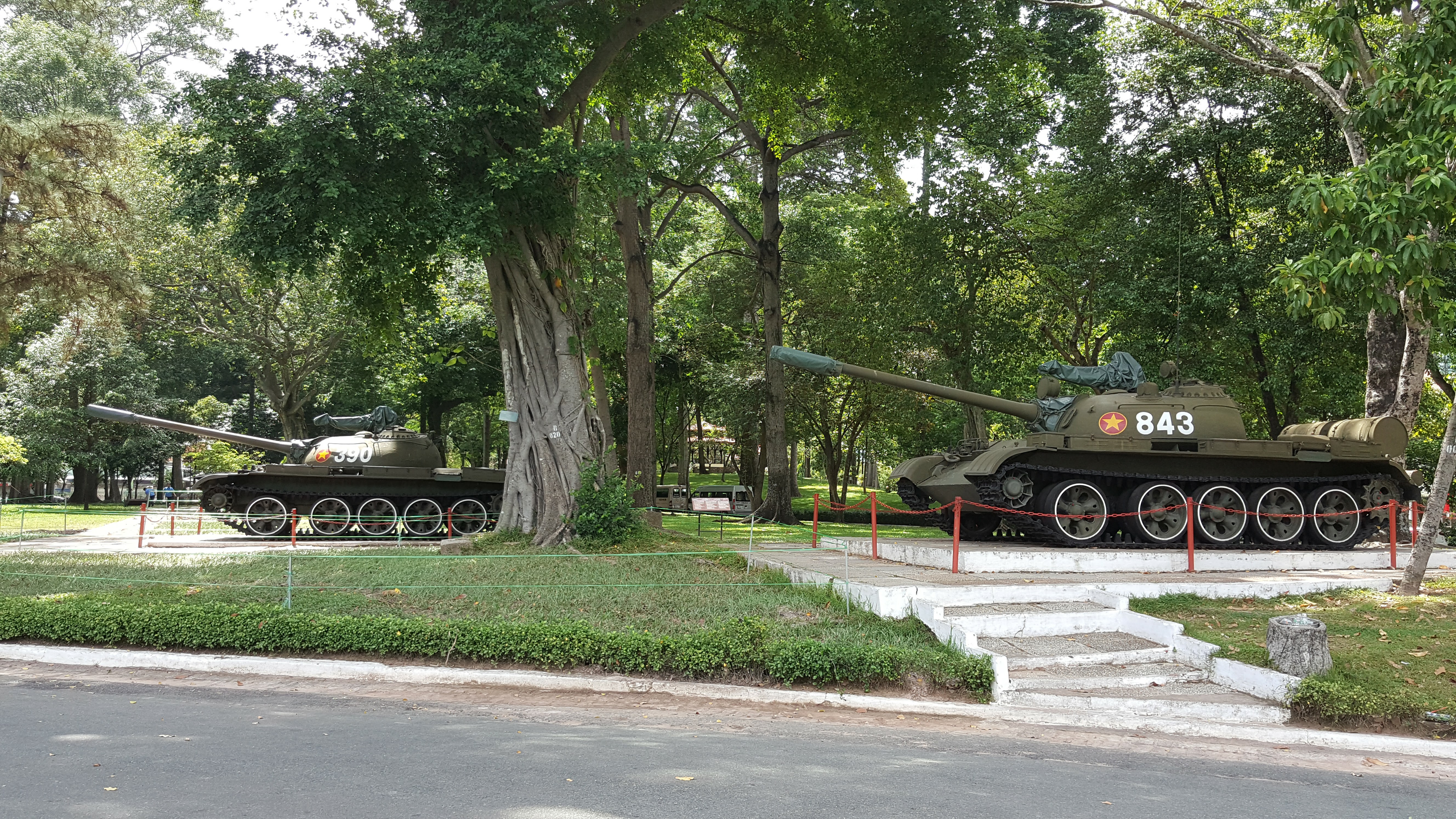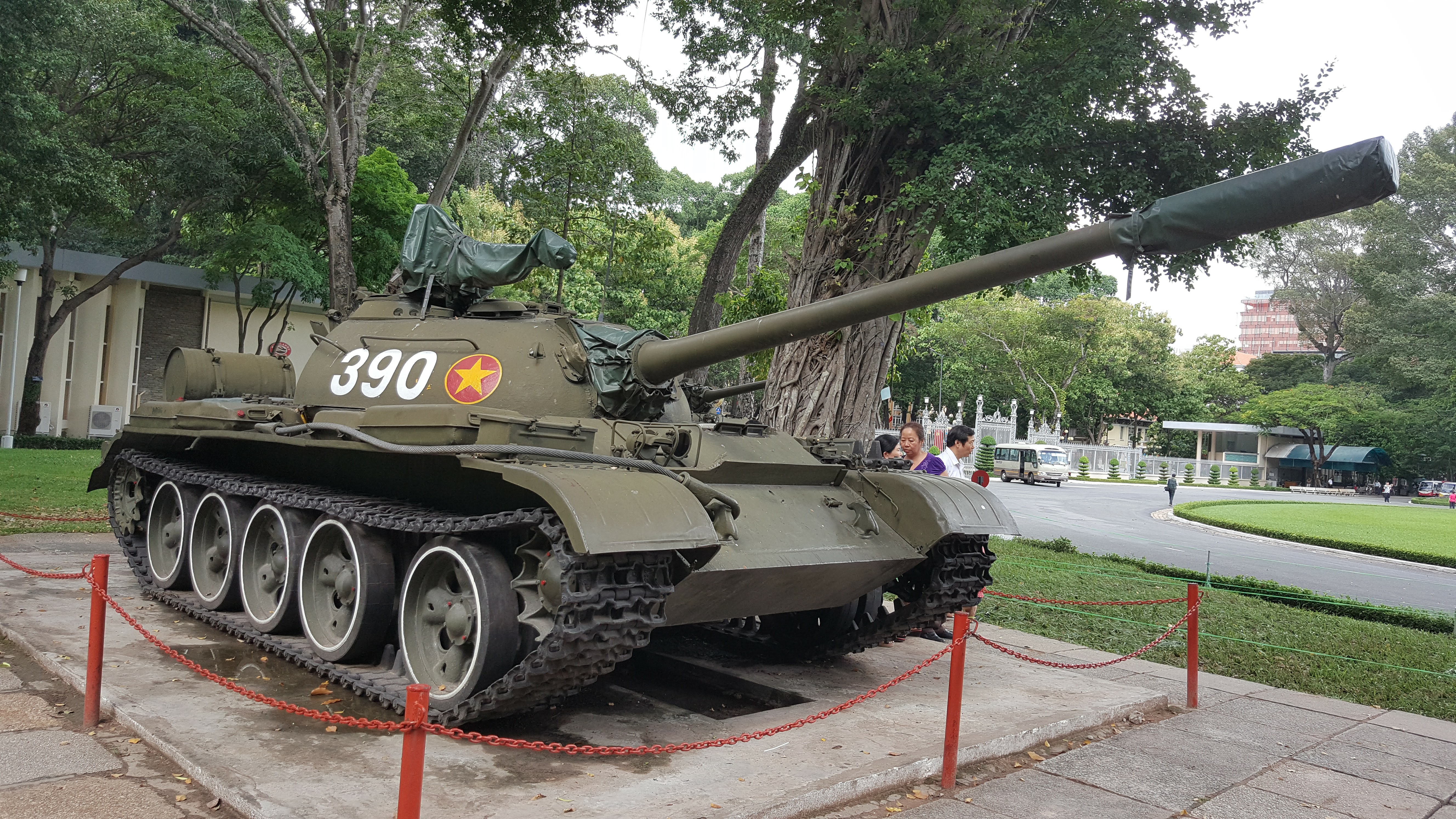 특히 당시 승리한 북 월맹군의 탱크 2대가 대통령궁 정문으로 진입하였는데 당시의 탱크가 입구 오른편에 전시되어있습니다.