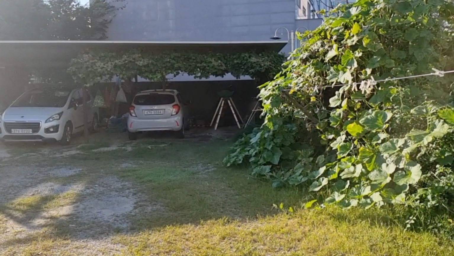 건물 안쪽에는 넓은 마당과 주차공간이 있습니다.