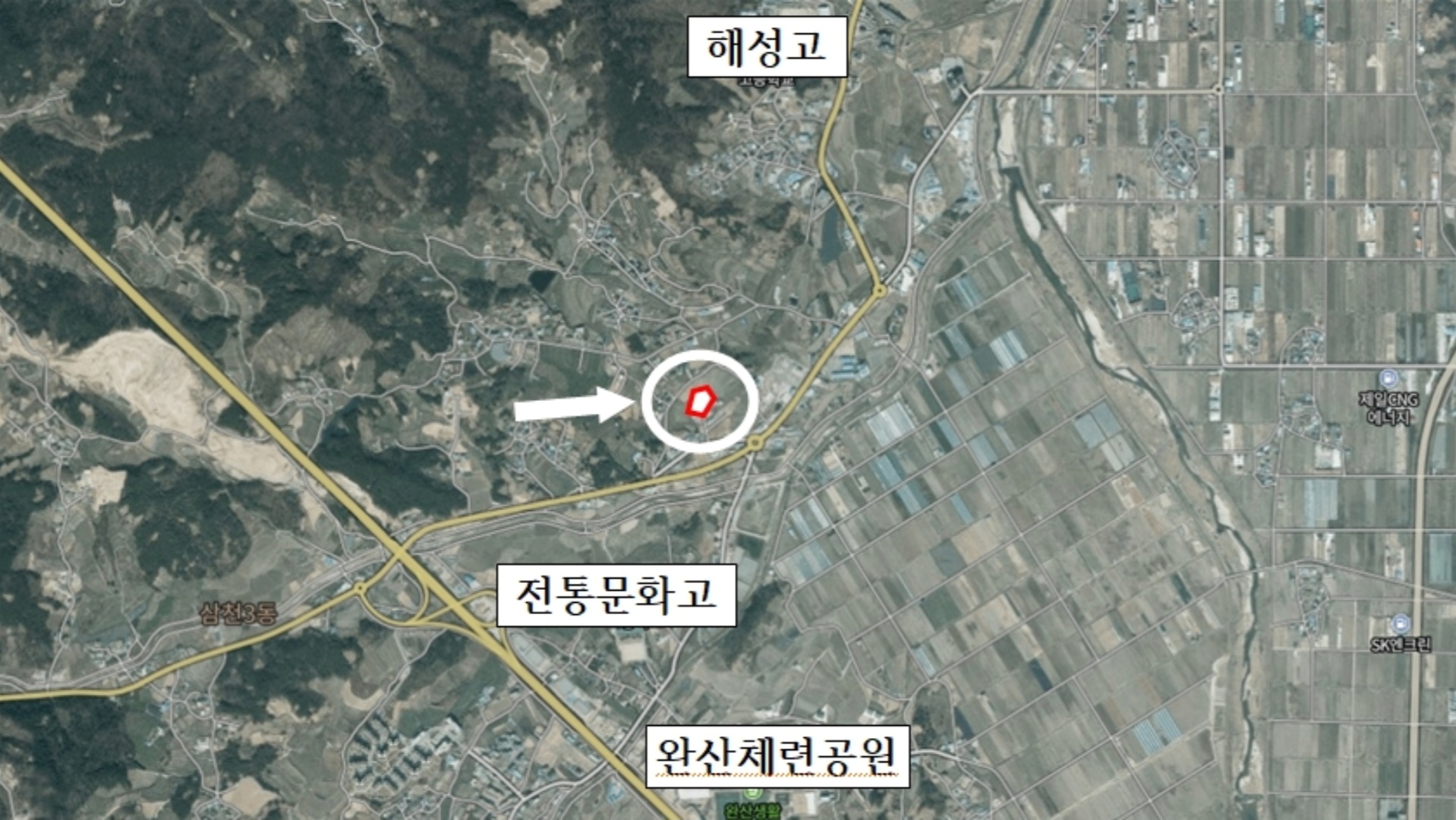 - 중인삼거리 회전교차로 부근으로서 모악산 전망이 좋음